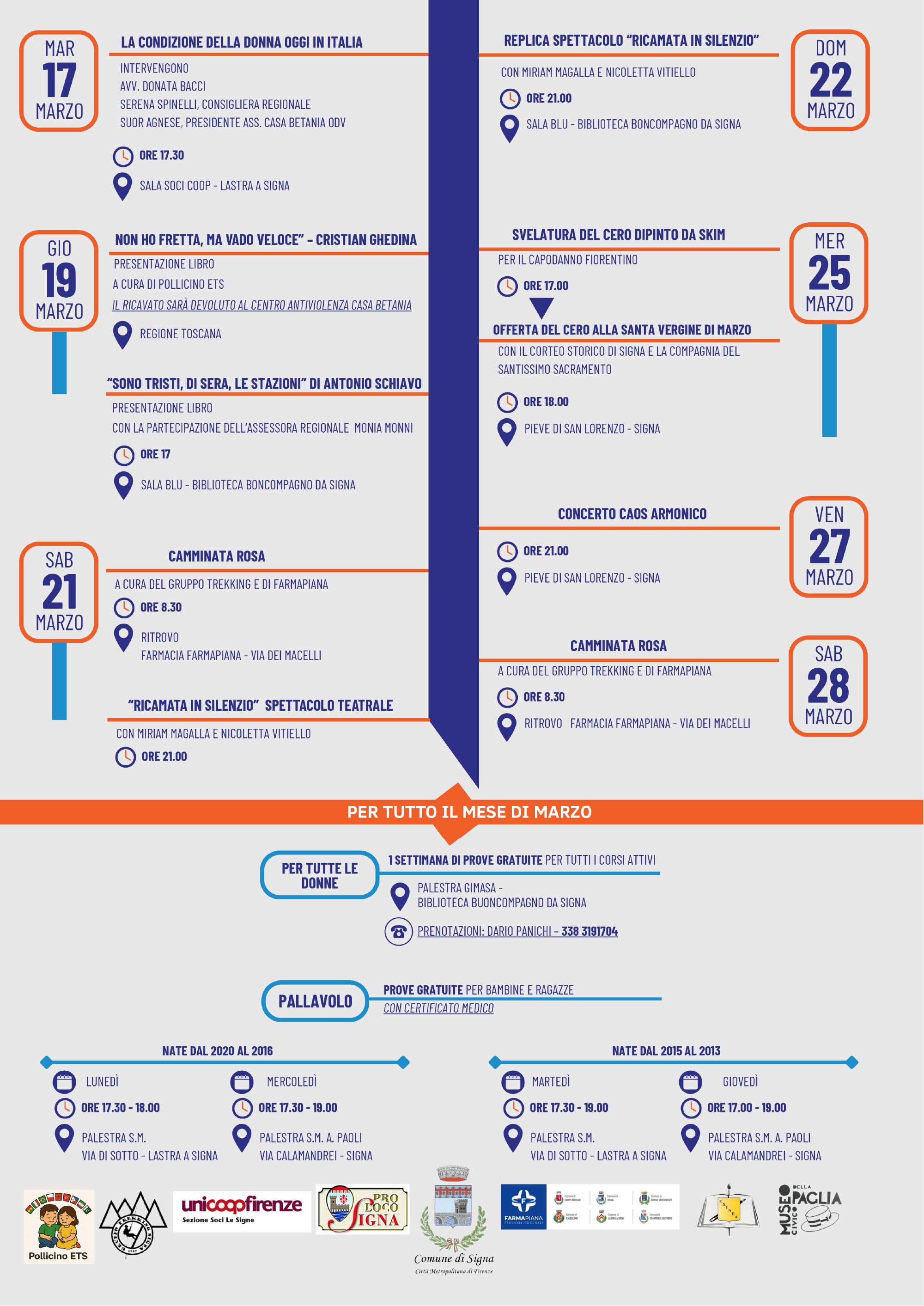 Date: 7 - 14 - 21 - 28 Marzo, ore 8.30