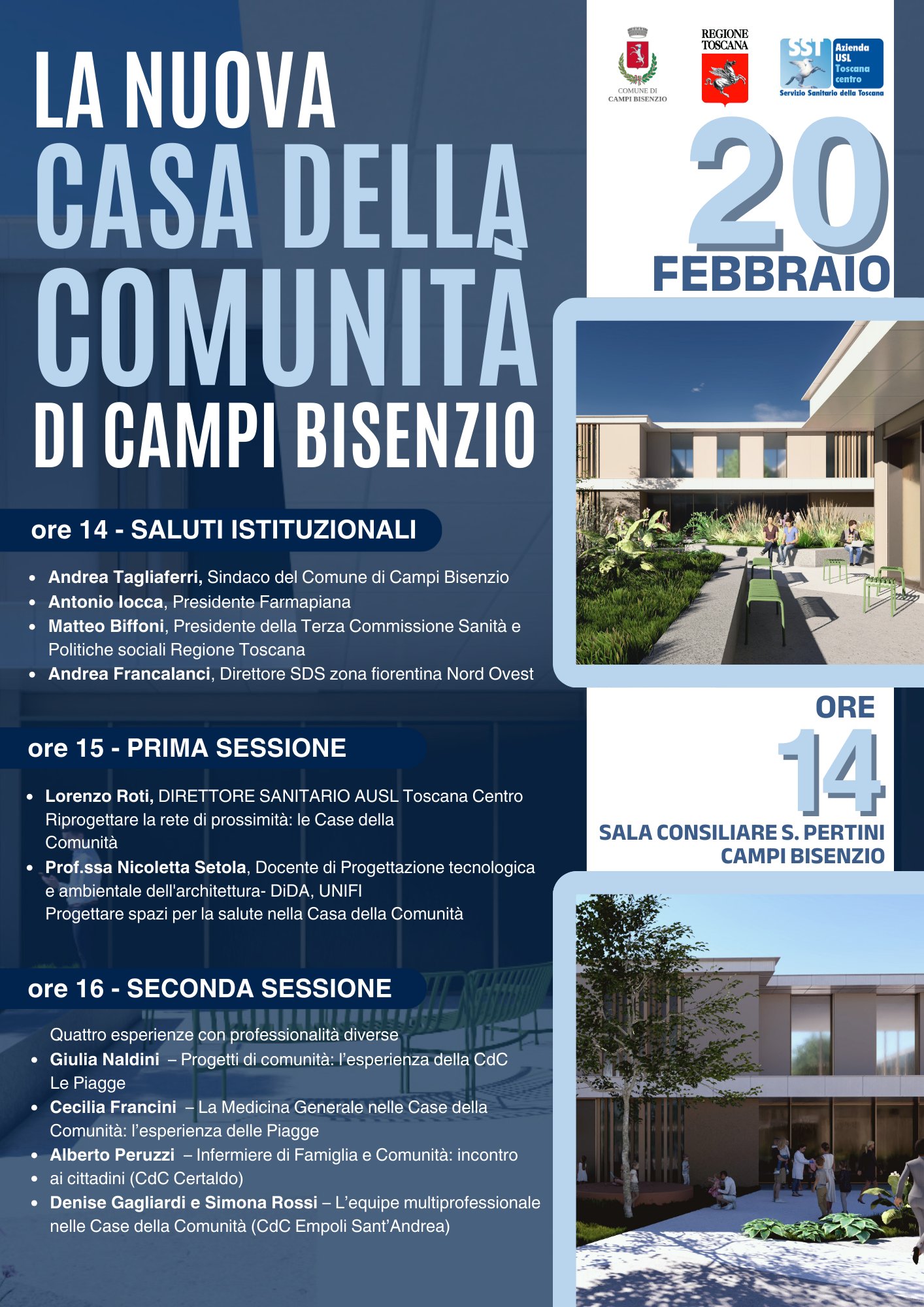 Facebook Instagram YoutubeL’incontro sarà un momento di approfondimento sulla nuova Casa della Comunità di Campi Bisenzio: ne verranno illustrati obiettivi, funzioni e ruolo strategico nel rafforzamento dei servizi socio-sanitari e dell’integrazione sul territorio, grazie al contributo di professionisti, istituzioni e amministratori.